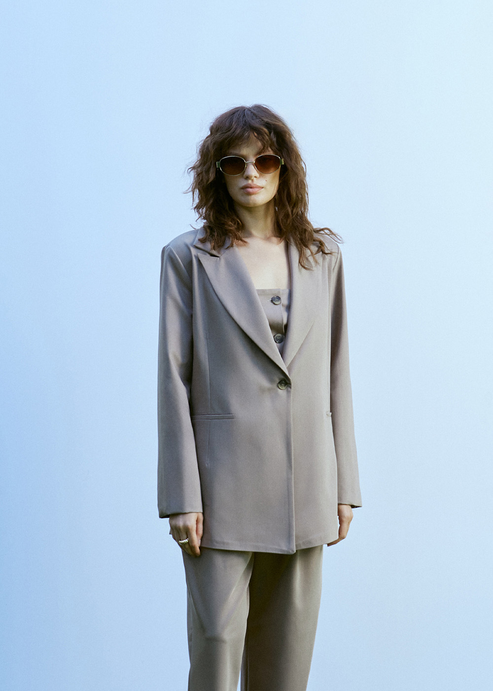 Ceket yakalı, fleto cep detaylı, astarlı, normal kalıp blazer ceket.